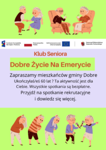 Ogłoszenie o rekrutacji uczestników do projektu Klub Seniora „Dobre Życie Na Emerycie” w Dobrem