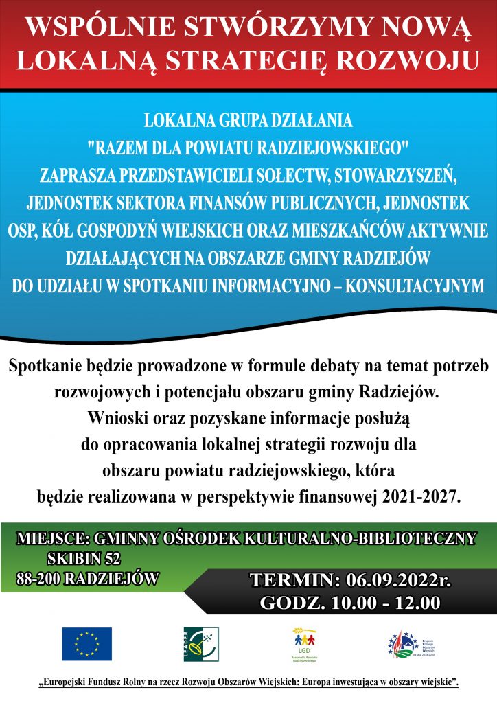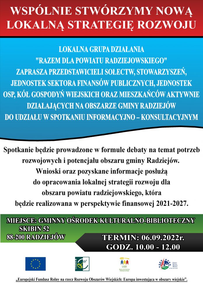 AktualnościFundusze Unijne 2021 - 2027Przygotowanie Lokalnej Strategii RozwojuWyróżnione 06.09.2022 r. – spotkanie otwarte w gminie Radziejów Przez Ewelina Patyk - 2 września 2022 577