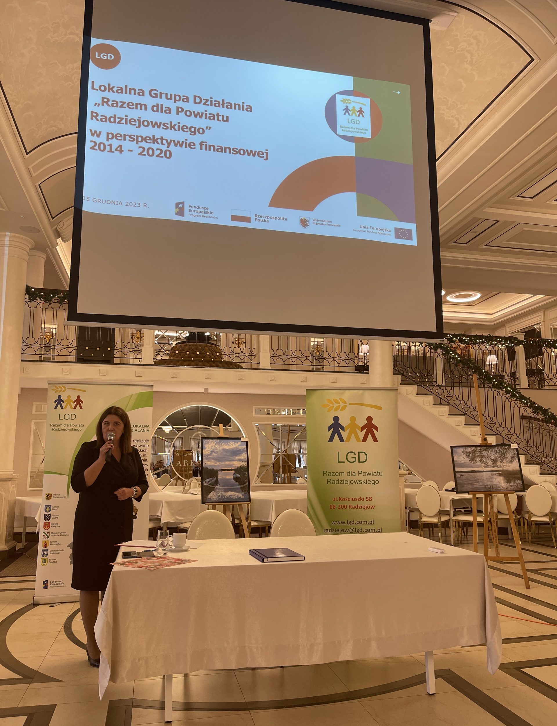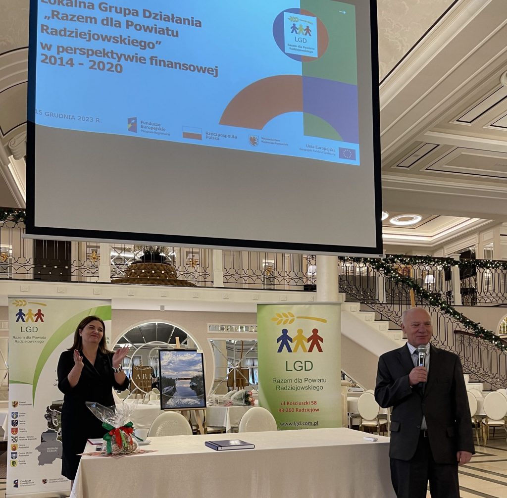 15 grudnia 2023 r. w Radziejowie, na zaproszenie Lokalnej Grupy Działania „Razem dla Powiatu Radziejowskiego”, spotkali się przedstawiciele sektorów publicznego, społecznego i gospodarczego. Na konferencji podsumowującej działania LGD w latach 2016-2023 Samorząd Województwa Kujawsko – Pomorskiego reprezentowała pani Aneta Jędrzejewska – członek Zarządu Województwa Kujawsko – Pomorskiego. Powiat Radziejowski oraz gminy naszego powiatu reprezentowali starosta, burmistrzowie oraz wójtowie. Byli z nami dyrektorzy gminnych ośrodków kultury i bibliotek oraz przedstawiciele organizacji pozarządowych, w tym ochotniczych straży pożarnych, kół gospodyń wiejskich, lokalnych stowarzyszeń. Towarzyszyła nam również zaprzyjaźniona sąsiednia Lokalna Grupa Działania Dorzecza Zgłowiączki. Sektor gospodarczy reprezentowali przedsiębiorcy, którzy dzięki środkom z Lokalnej Strategii Rozwoju tworzyli nowe i rozwijali istniejące firmy, a także tworzyli miejsca pracy.