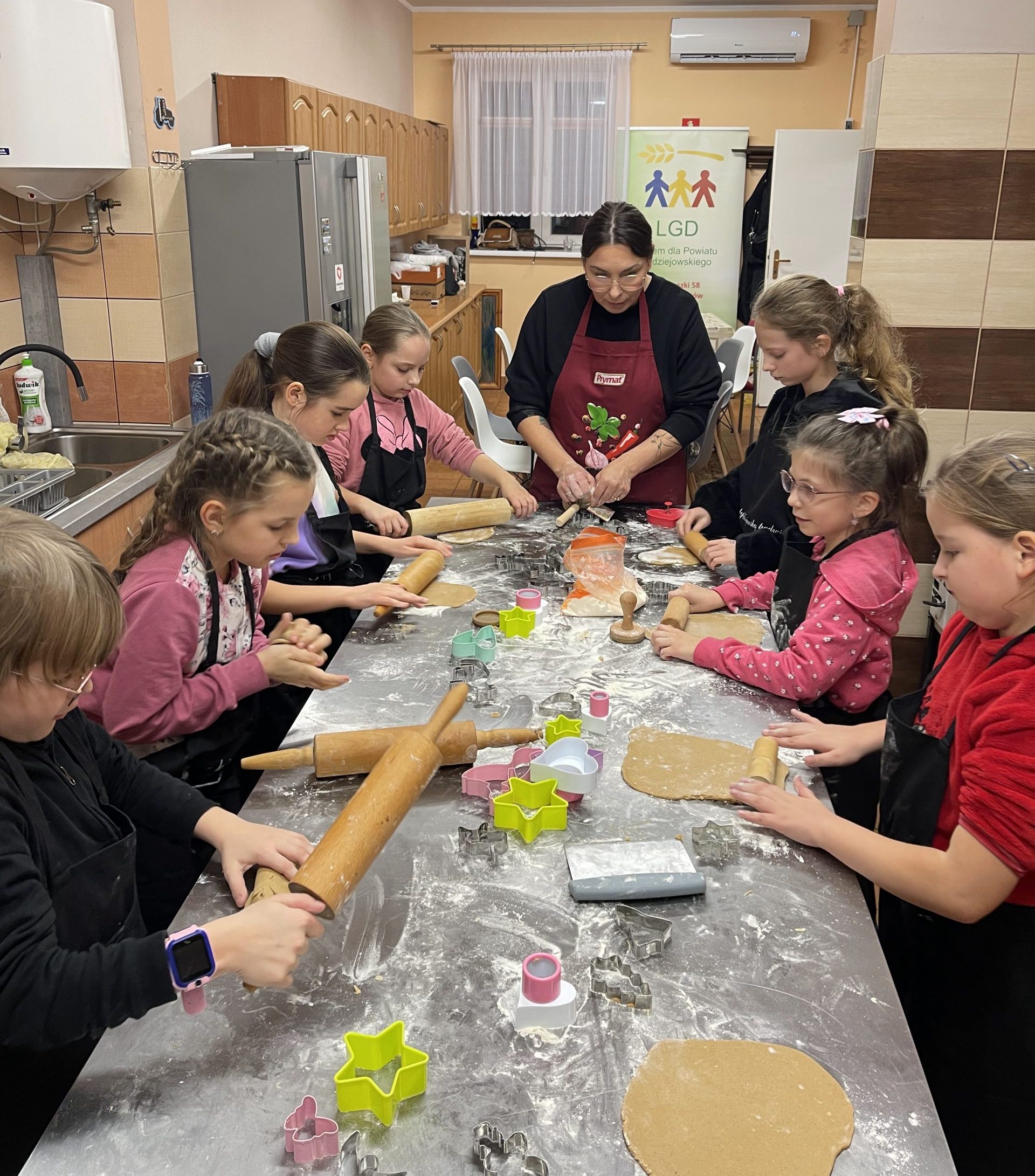 W grudniu, wspaniała cukierniczka – Gosia Rybacka uczyła dzieci i młodzież pieczenia i dekorowania muffinek oraz pierniczków. Zaraz po spotkaniach z młodym pokoleniem, przyszedł czas na dorosłych. Panie przygotowały z Gosią pyszne pączki oraz pierniczki. Wszystkie warsztaty były zakończone degustacją. Było pysznie i wesoło.