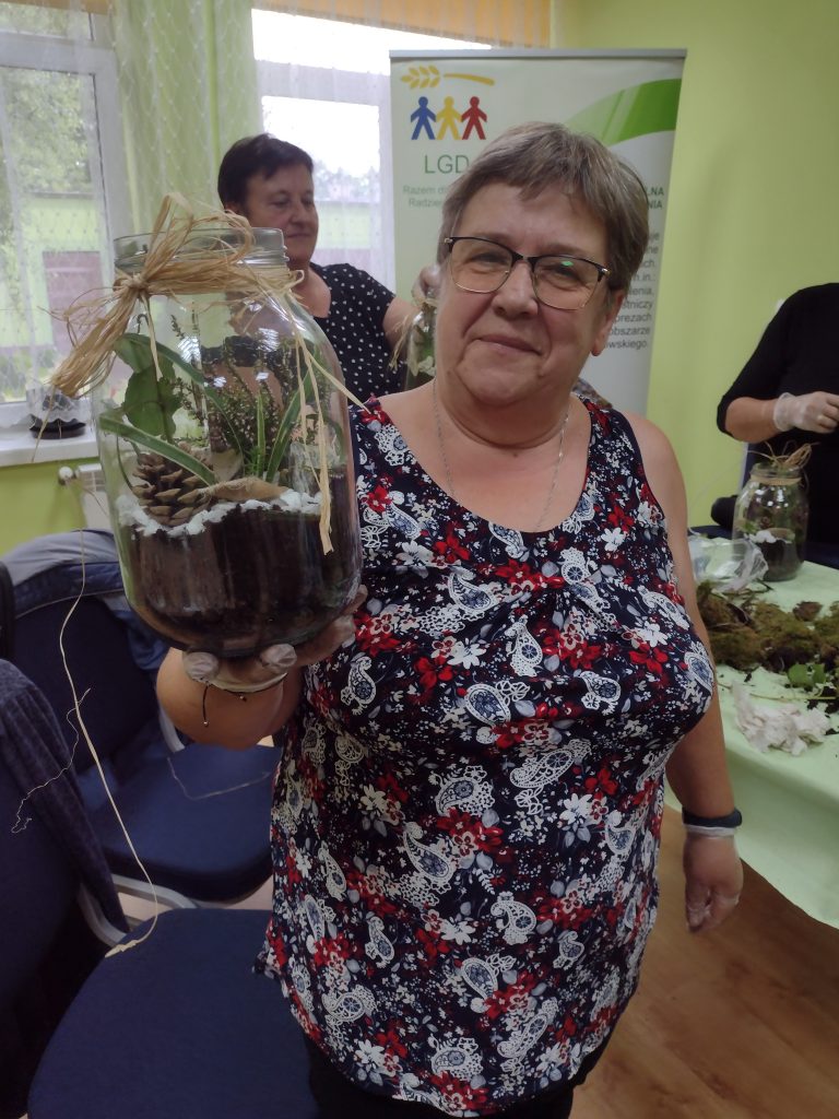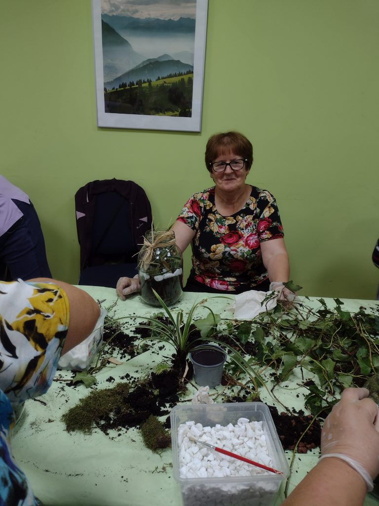 W ramach spotkania odbyły się warsztaty rękodzielnicze, które poprowadziła pani Agnieszka Matusiak z Akademii Radości JOY. Uczestnicy warsztatów mogli samodzielnie przygotować dekorację – Las w słoiku.