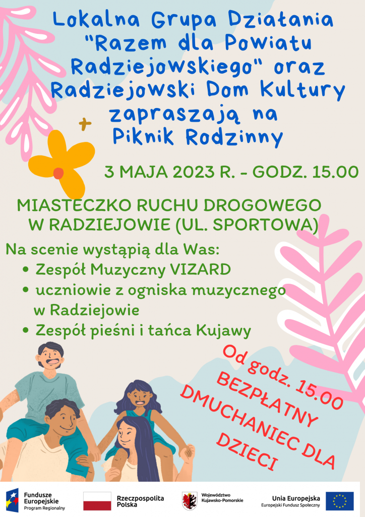 Zapraszamy wszystkich mieszkańców powiatu radziejowskiego na Piknik Rodzinny, promujący Centrum Aktywności Lokalnej w Radziejowskim Domu Kultury. Na miejscu będą Państwo mogli poznać szczegóły działania CAL oraz pobrać dokumenty rekrutacyjne do projektu “Aktywni i zintegrowani w Powiecie Radziejowskim”.