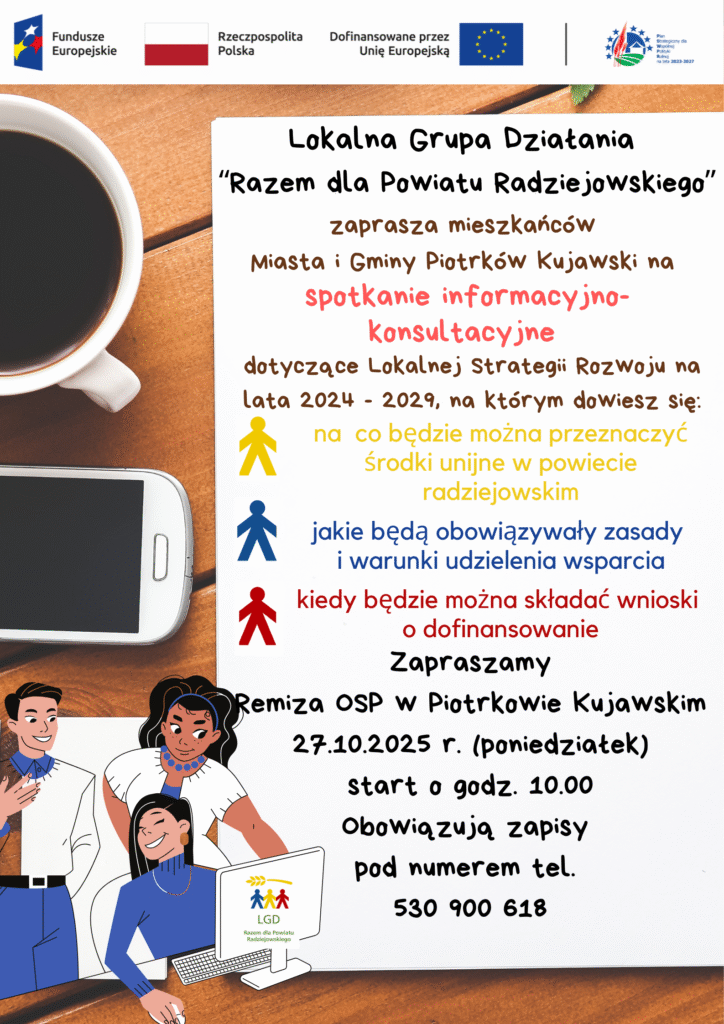 Zapraszamy mieszkańców Miasta i Gminy Piotrków Kujawski na spotkanie informacyjno-konsultacyjne, dotyczące środków unijnych na inicjatywy lokalne na lata 2024-2029